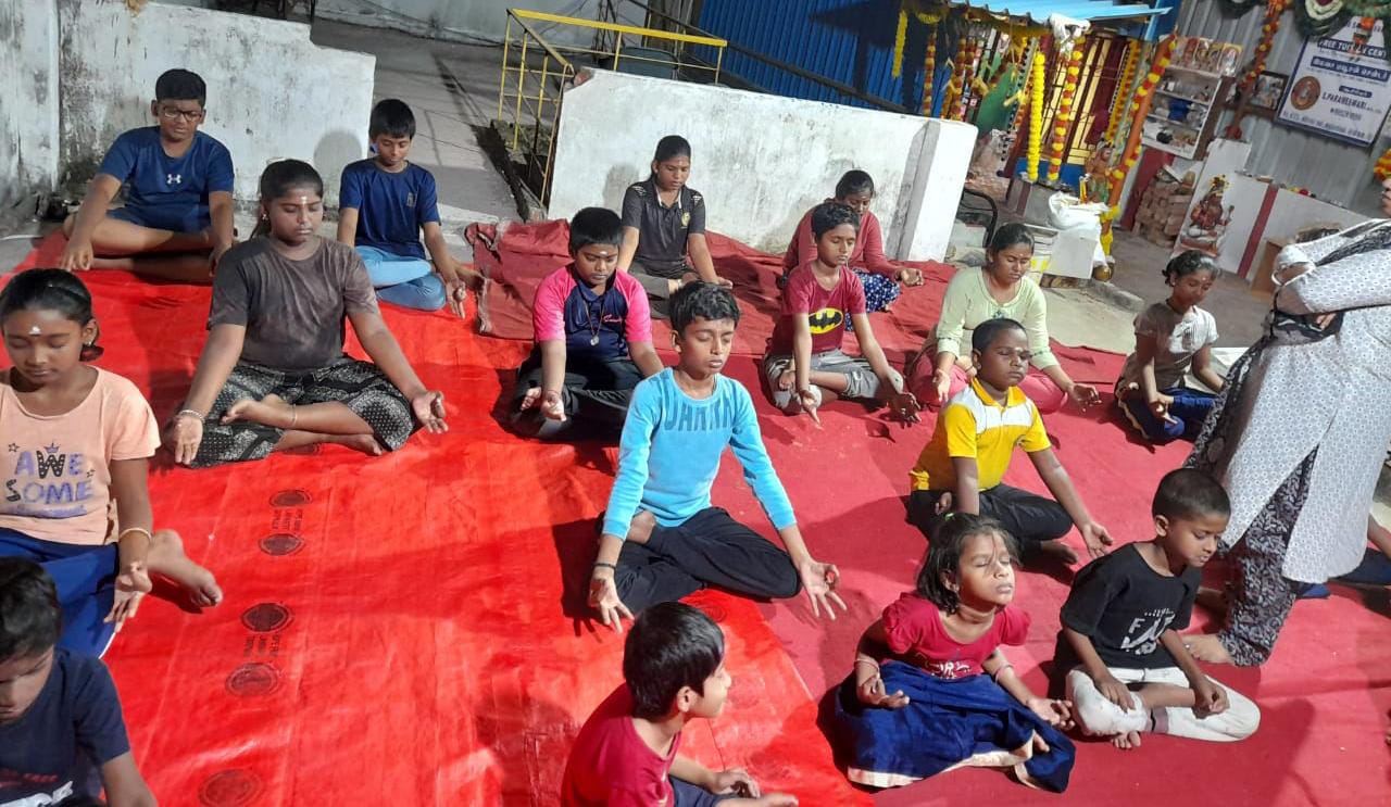 To provide free educational support, food, health services, and yoga for those in need, promoting overall well-being and empowerment.